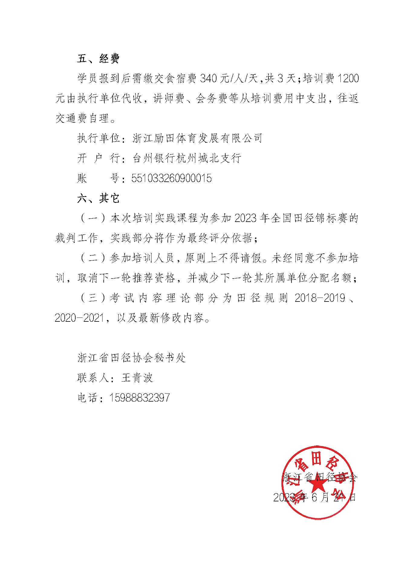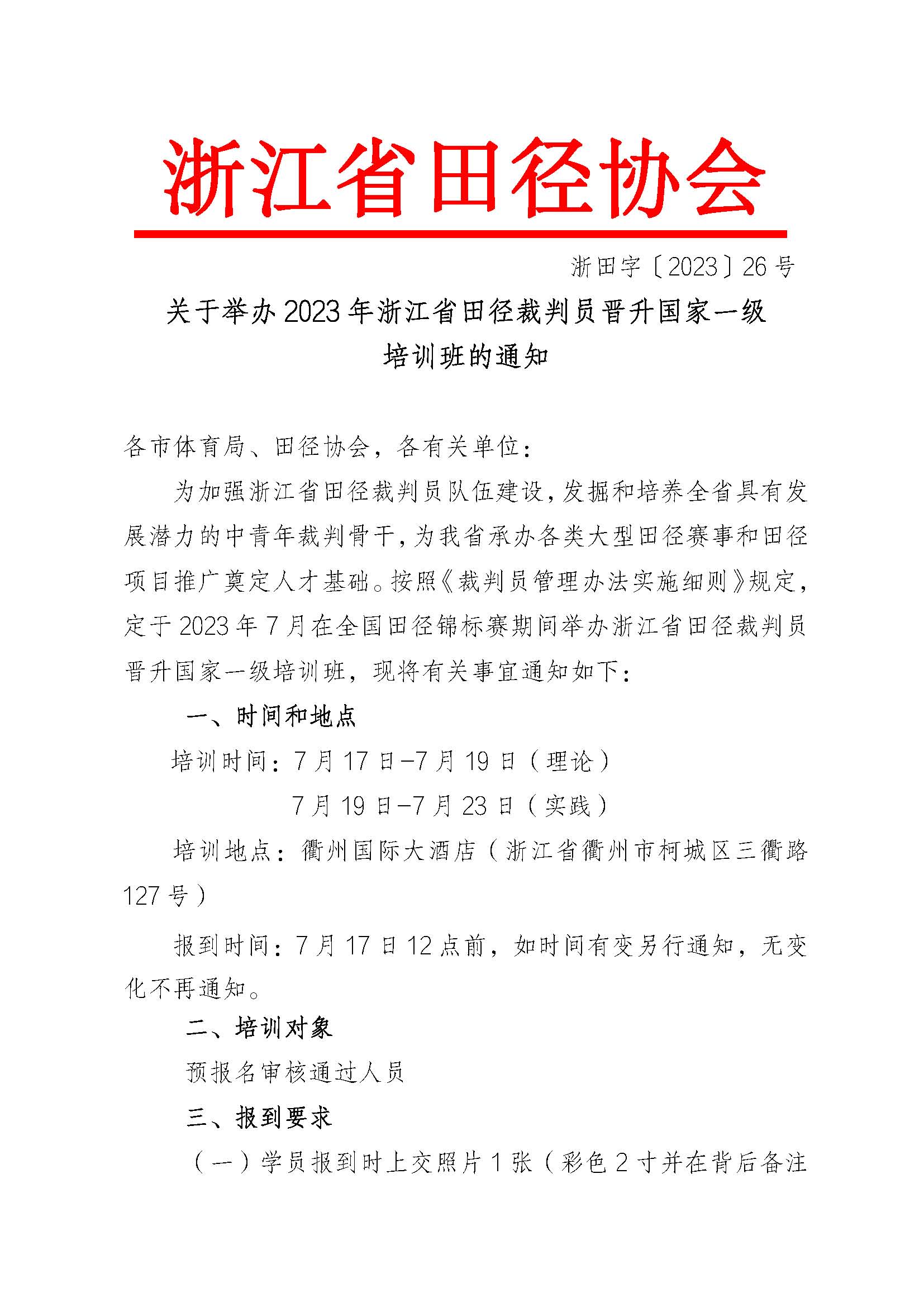 关于举办2023年浙江省田径裁判员晋升国家一级培训班的通知