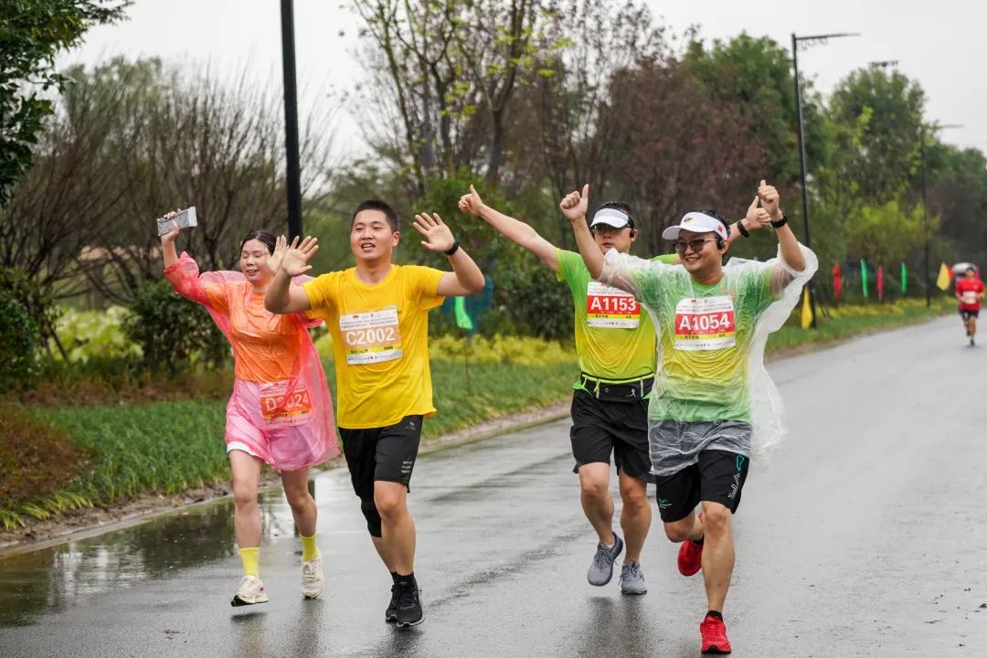 随着枪响,一道道彩色的身影冲出起点,脸上的表情或坚毅、或兴奋,细密的雨丝打在身上也被火热的马拉松精神给挡了回去。