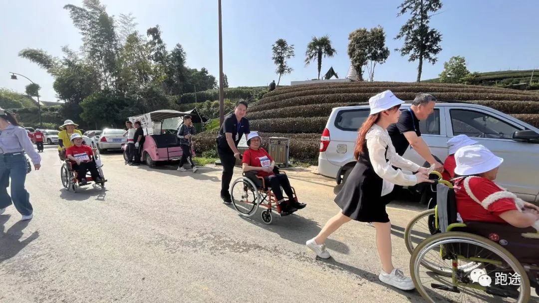 上午9点,随着国歌奏响在茶村上空,运动员们正式起跑。本次比赛起终点设在何家村小小生命健康基金会的路边上,赛道沿途设有多个补给点为运动员们提供饮料与水果。比赛分为健身大众组和健残共融组。赛道全程3.88公里,运动员矫健的身影穿梭于风景如画的茶山之间,引起了沿途观众的阵阵欢呼。在风景秀丽的光明寺水库大坝,完赛的健残共融组运动员与健身大众组的运动员一一击掌鼓劲,加油,加油,加油,运动员、观众、游客,此起彼伏的加油呐喊声,回荡在光明寺水库的上空。