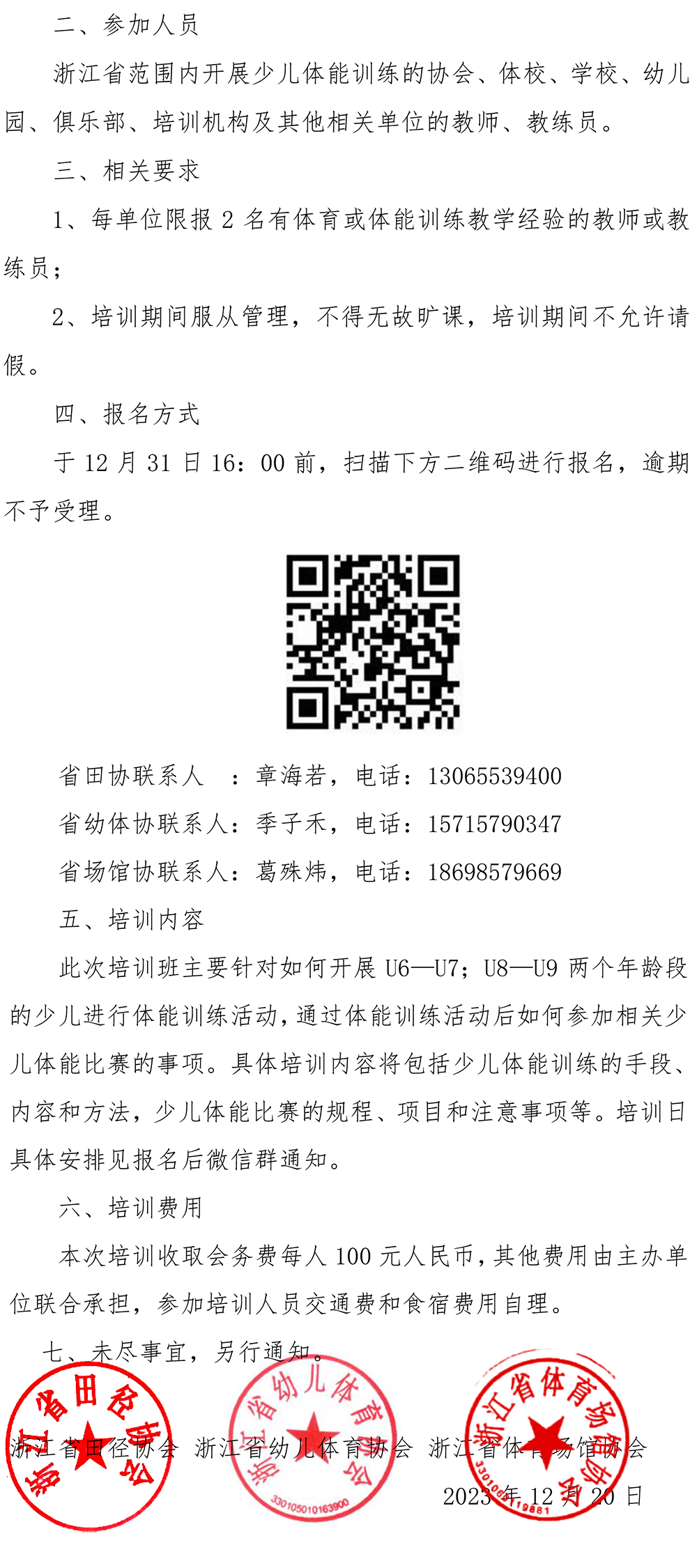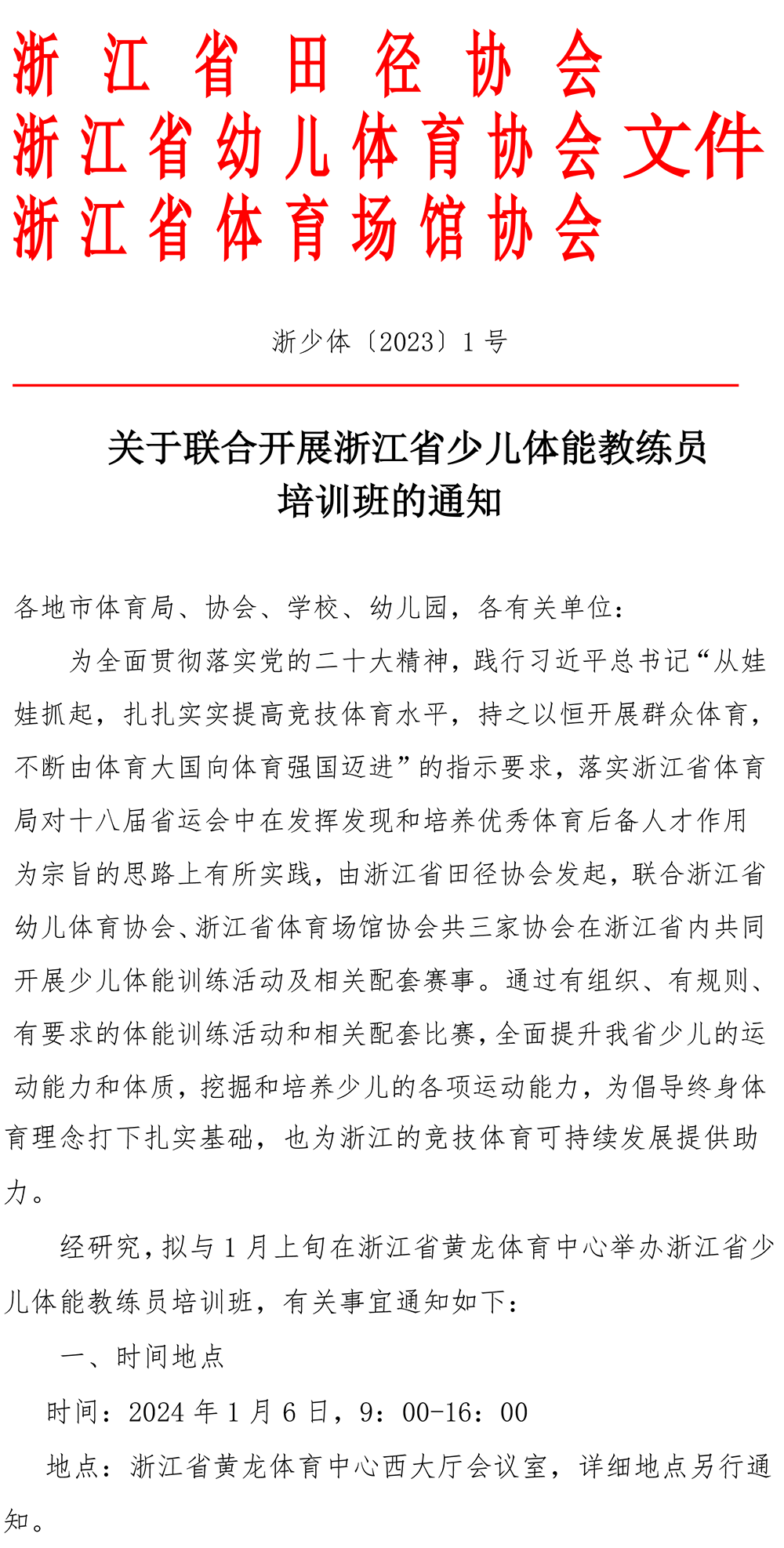 关于联合开展浙江省少儿体能教练员培训的通知