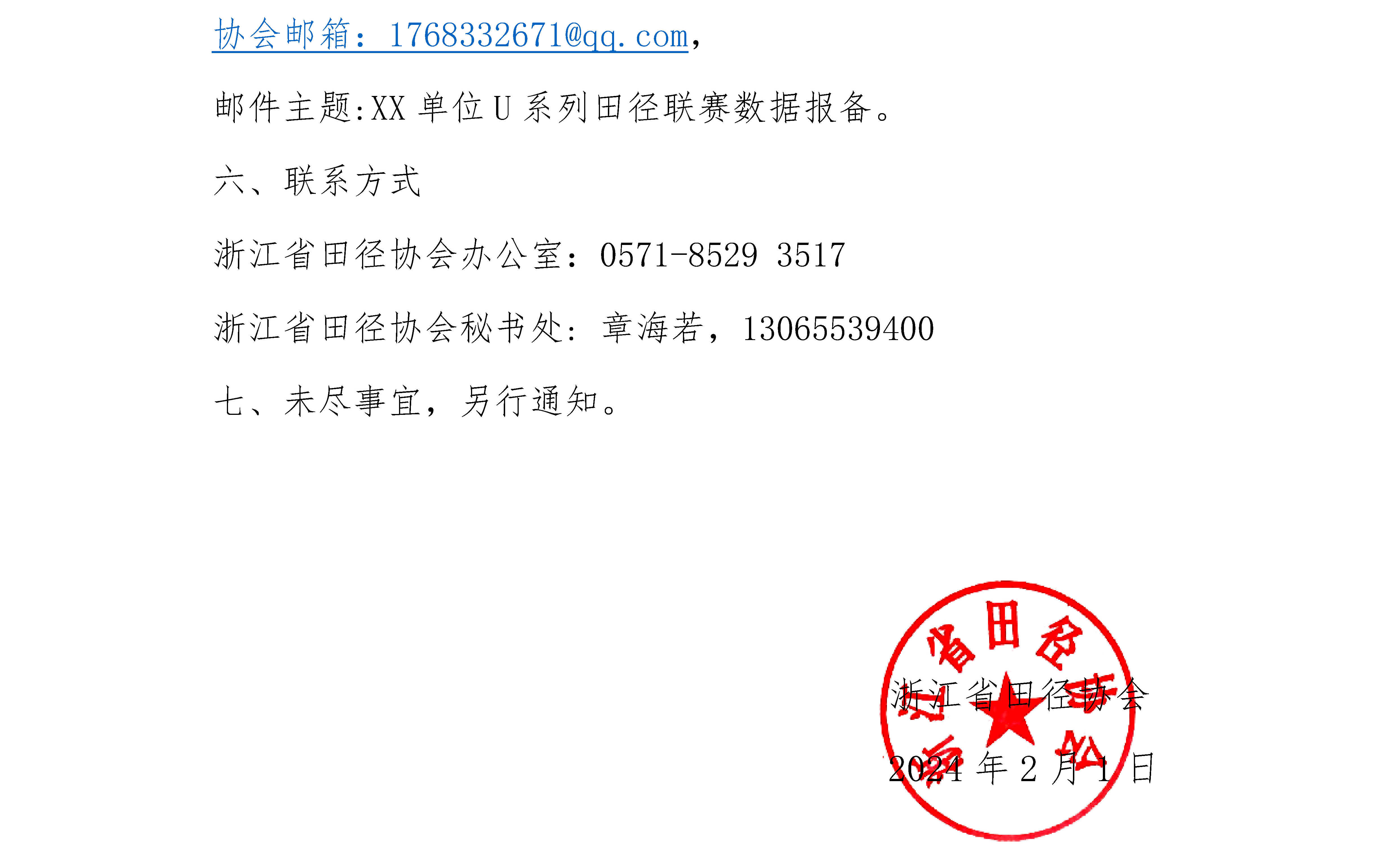 1.2024 年 U 系列田径联赛报备数据模板 2.2024 年 U 系列田径联赛报备数据统计表