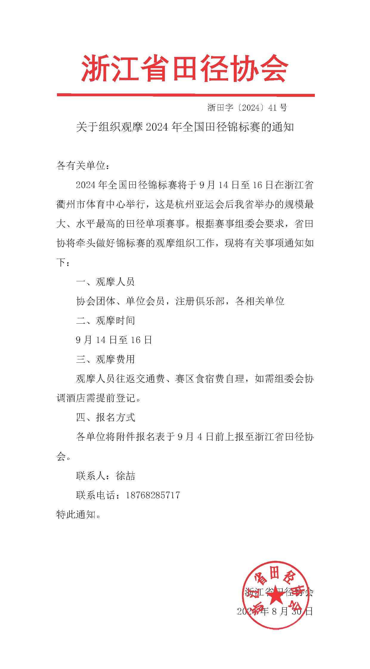 关于组织观摩2024年全国田径锦标赛的通知
