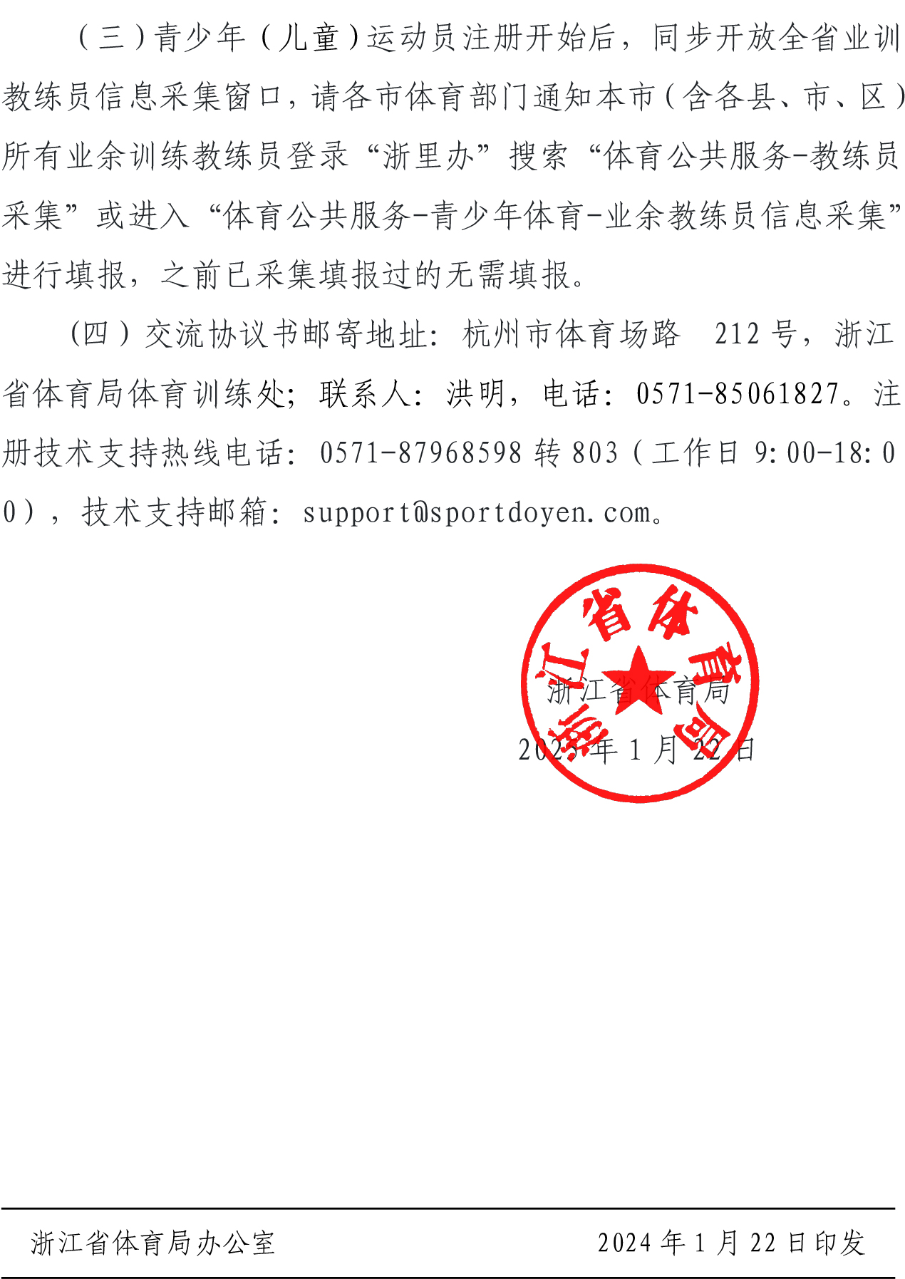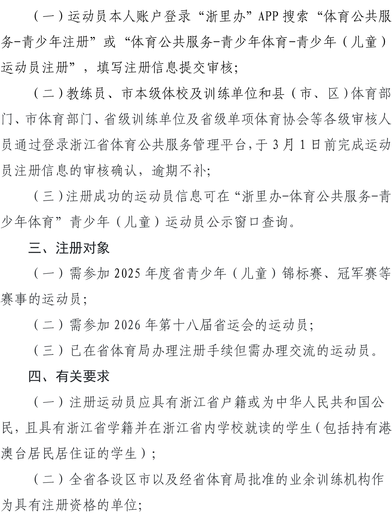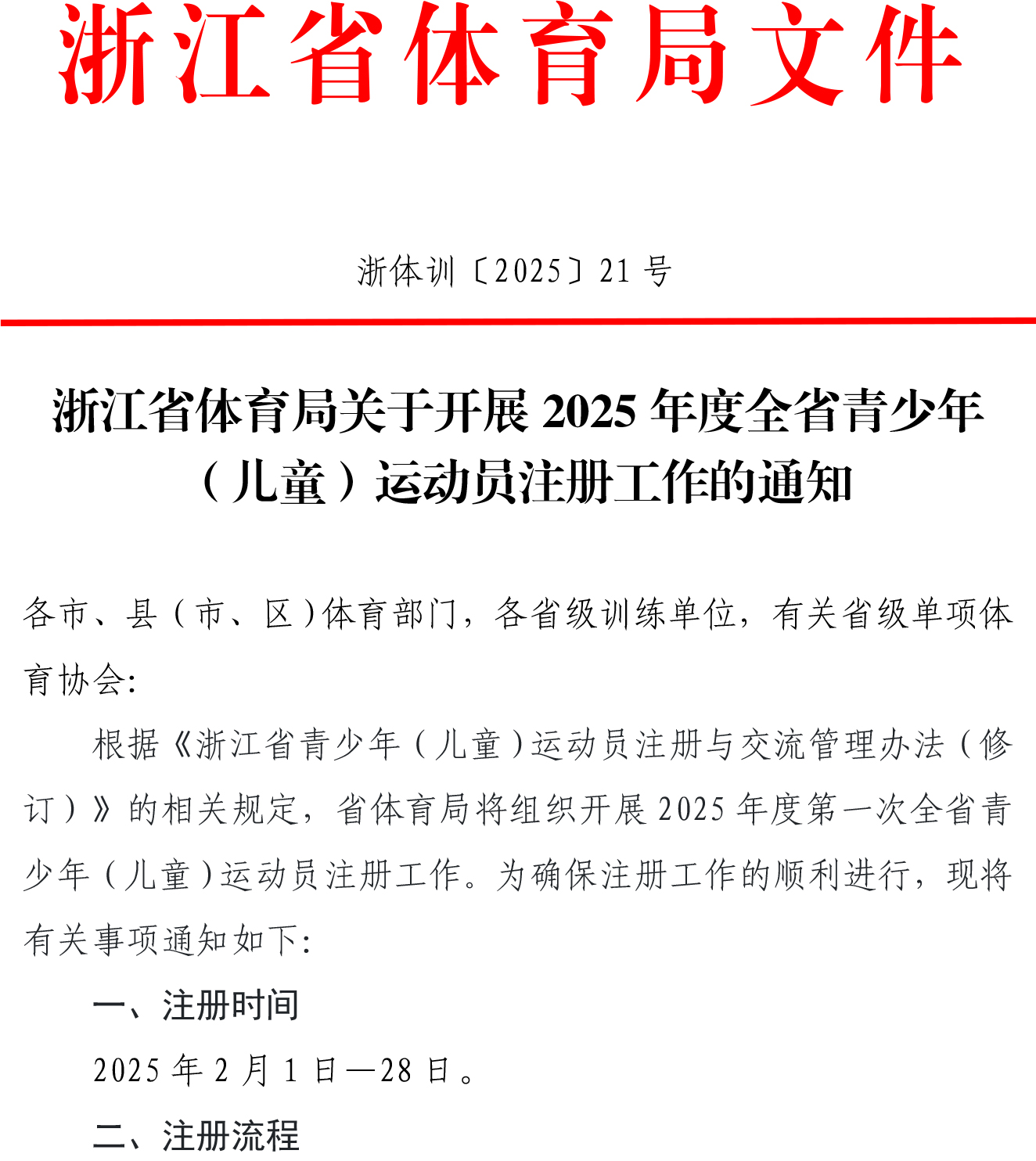 浙江省体育局关于开展2025年度全省青少年(儿童)运动员注册工作的通知