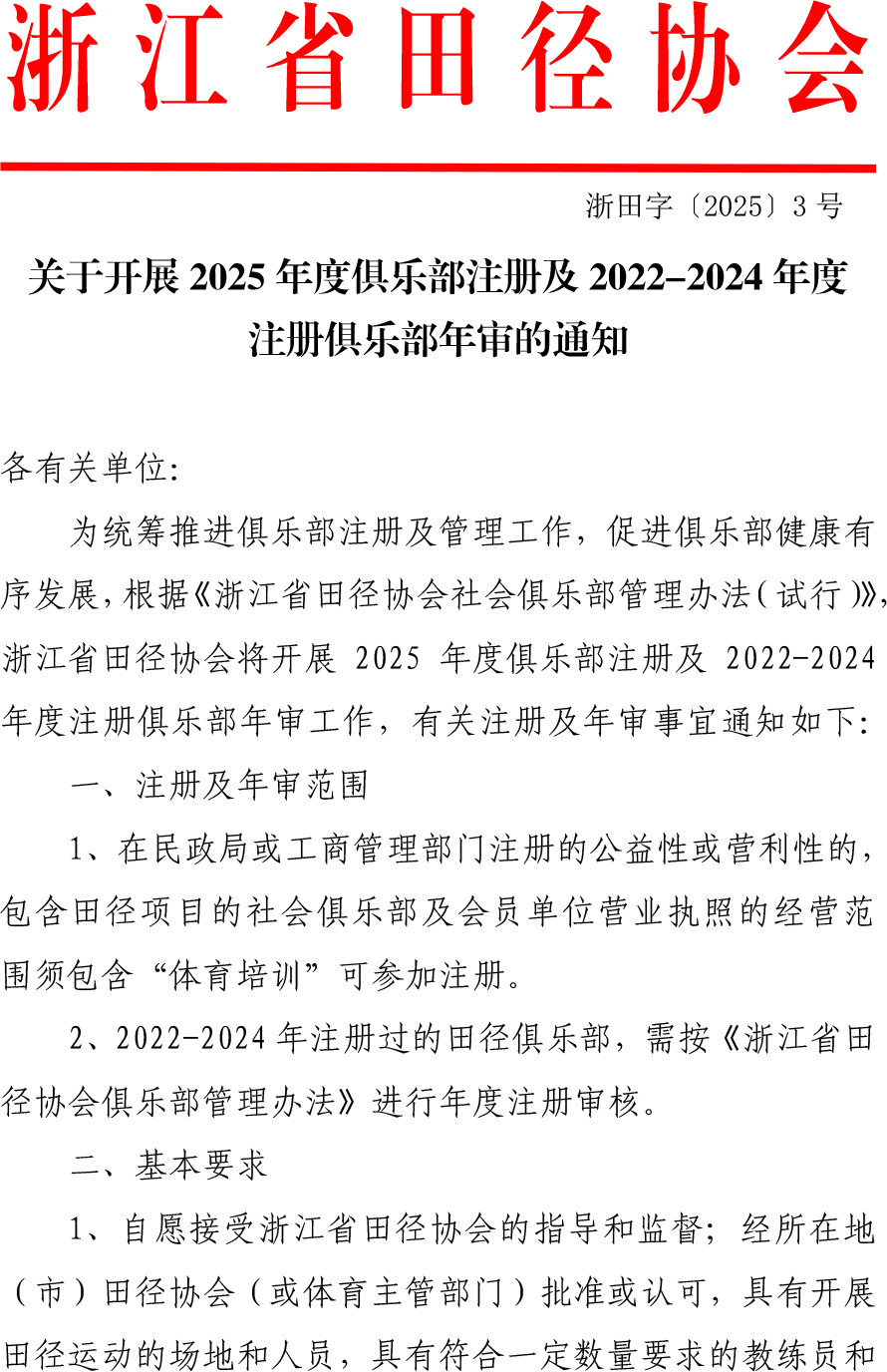 开展2025年度俱乐部注册及2022-2024年度注册俱乐部年审的通知