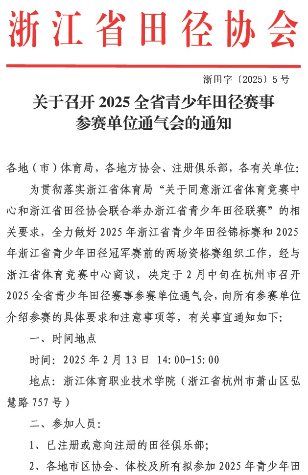关于召开2025全省青少年田径赛事参赛单位通气会的通知