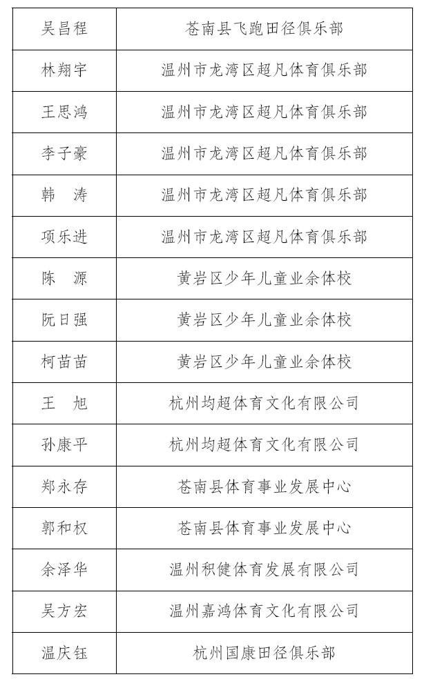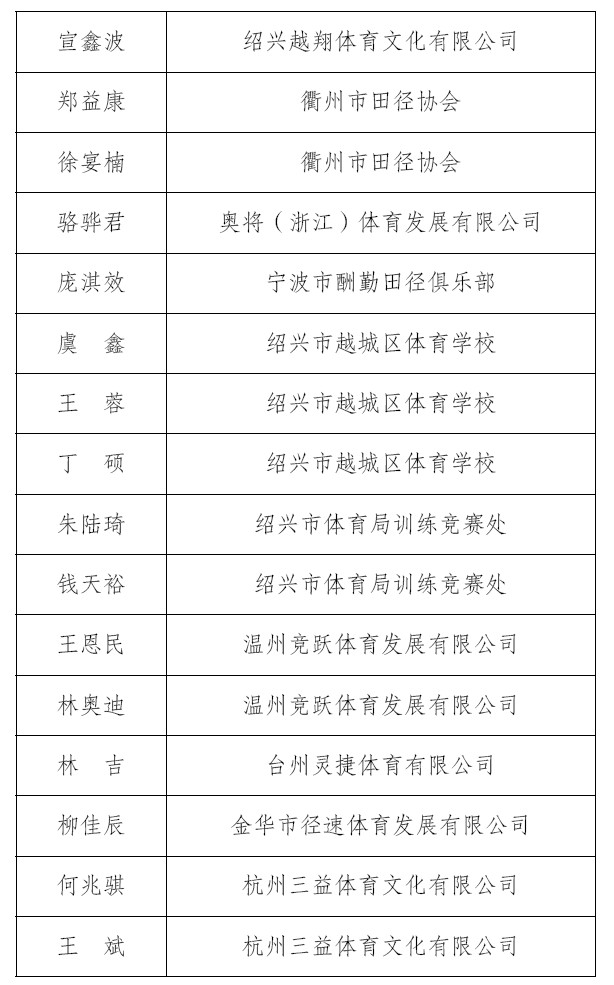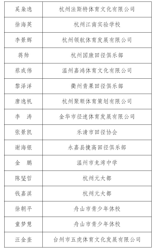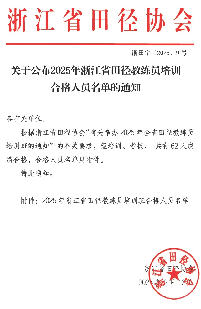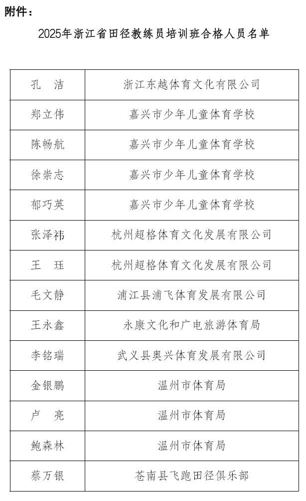 关于公布2025年浙江省田径教练员培训合格人员名单的通知