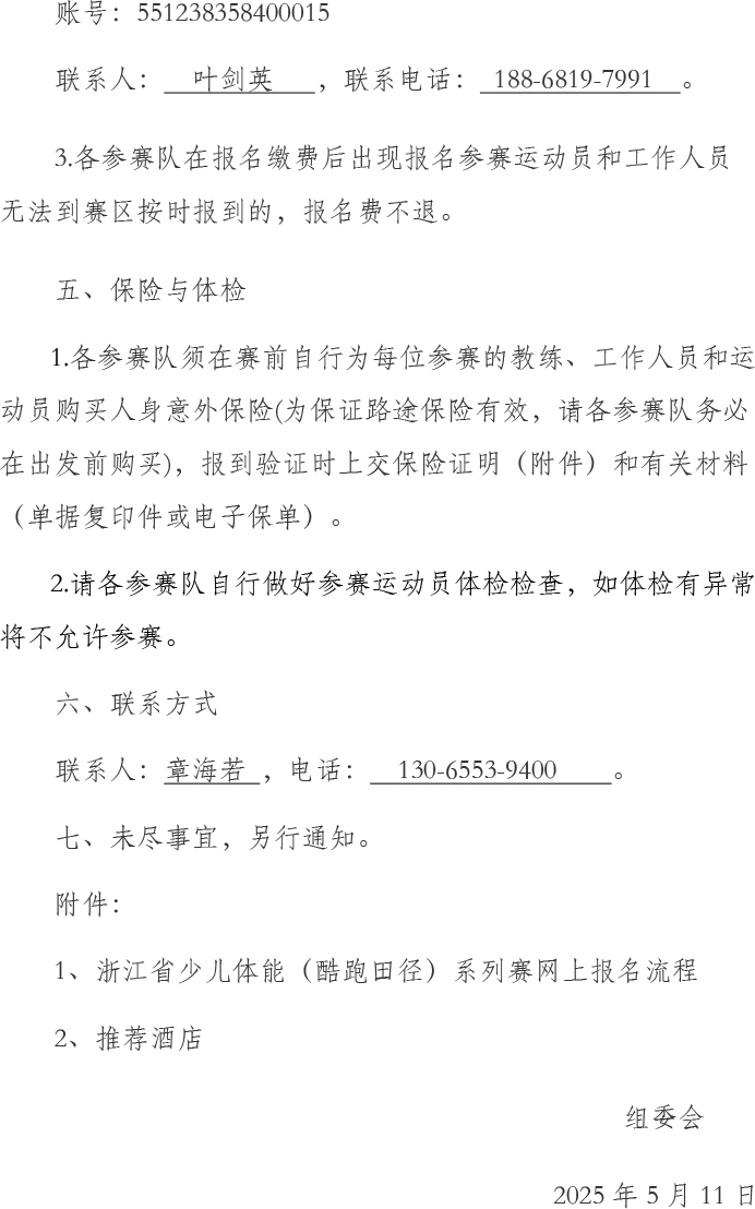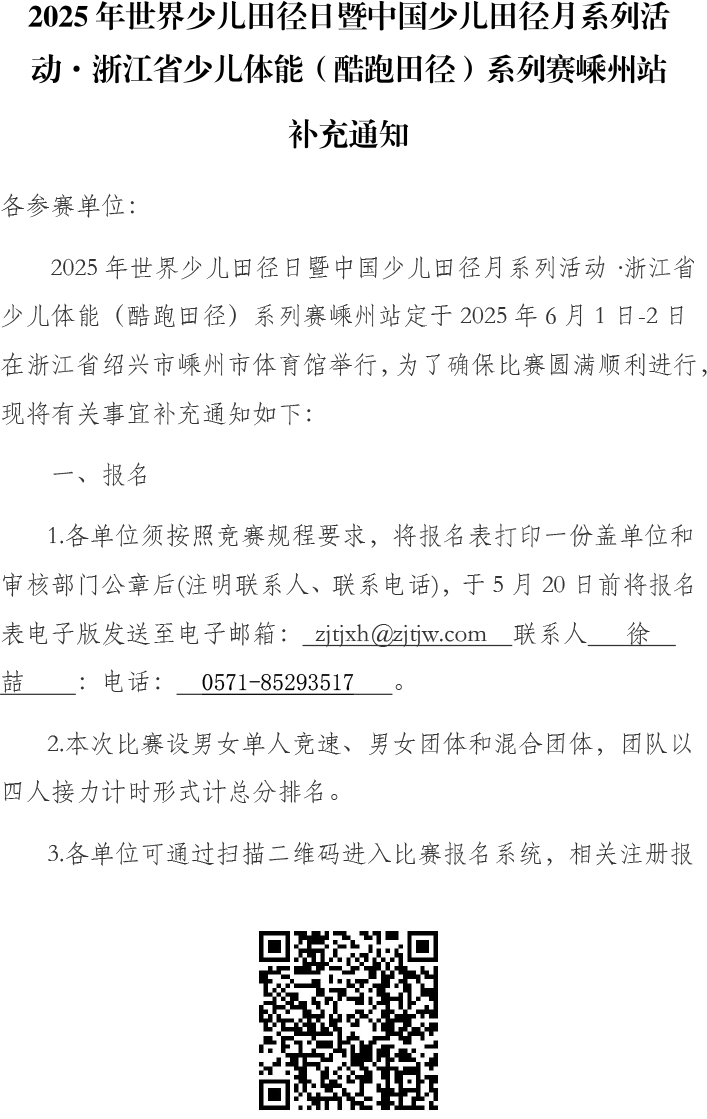 2025年浙江省少儿体能(酷跑田径)系列赛嵊州站补充通知