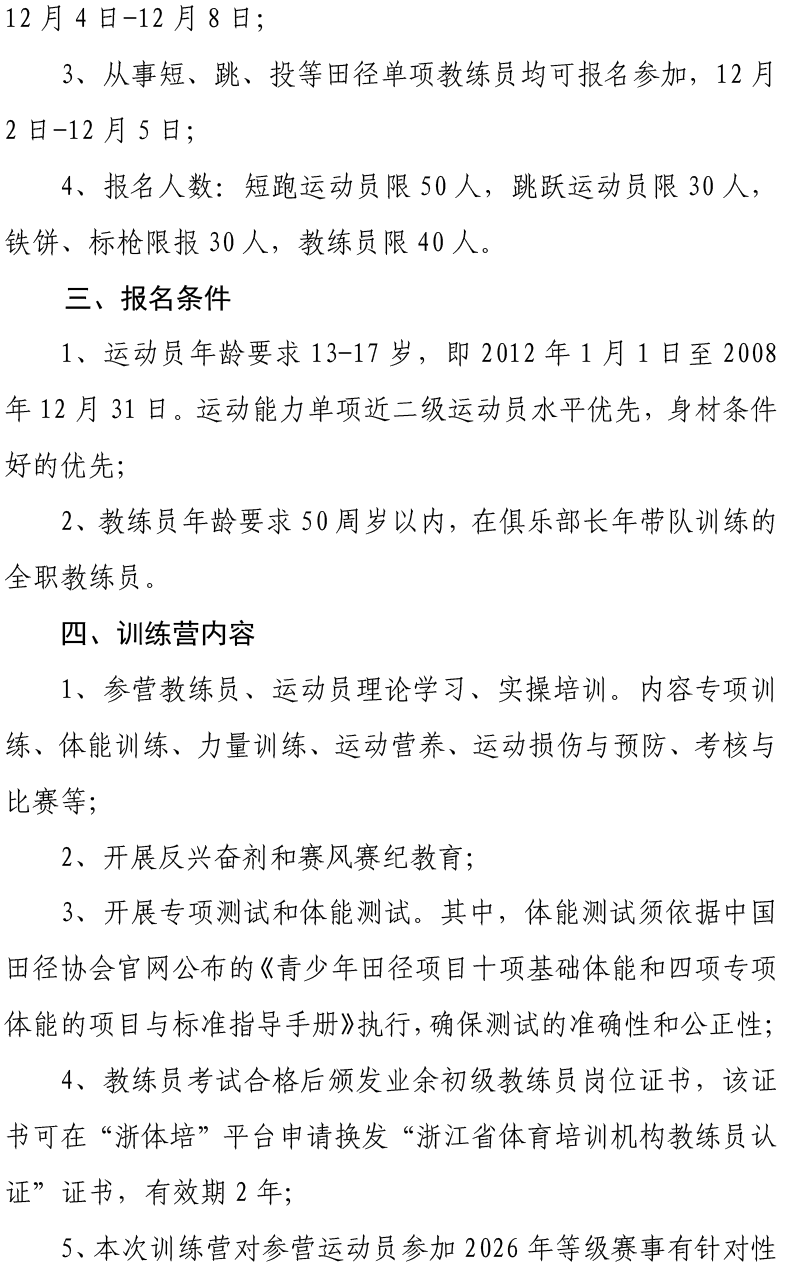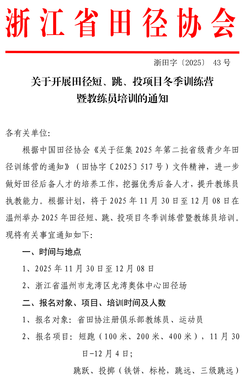 关于开展田径短、跳、投项目冬季训练营暨教练员培训的通知
