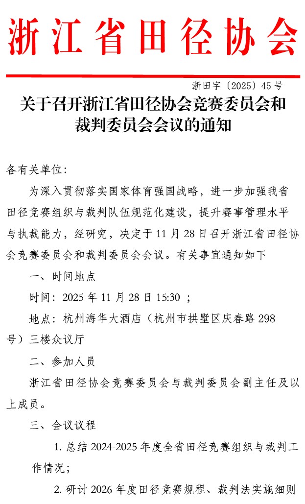 关于召开浙江省田径协会竞赛委员会和 裁判委员会会议的通知