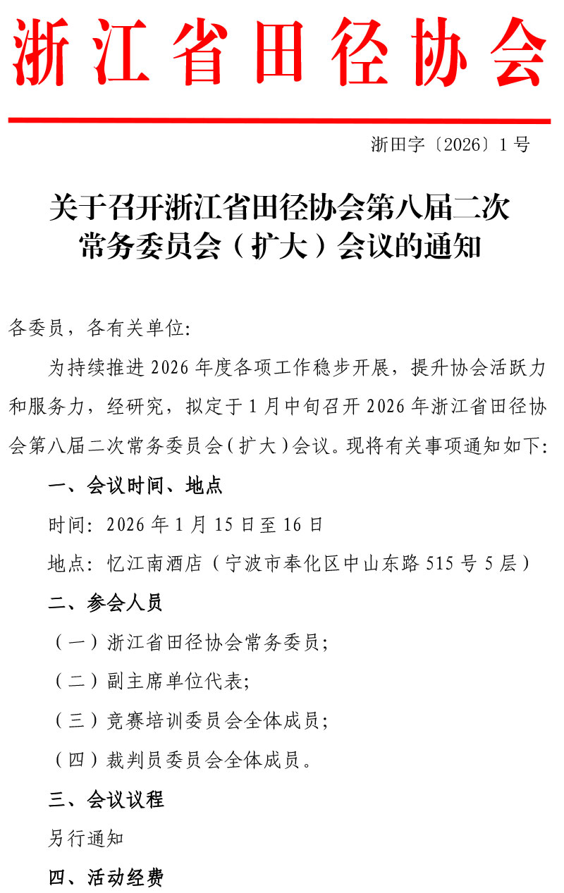 关于召开浙江省田径协会第八届二次常务委员会(扩大)会议的通知