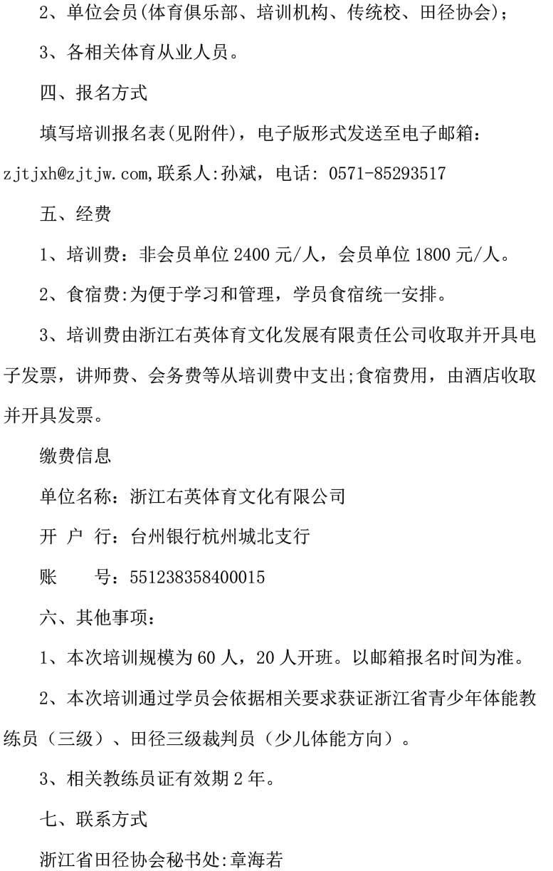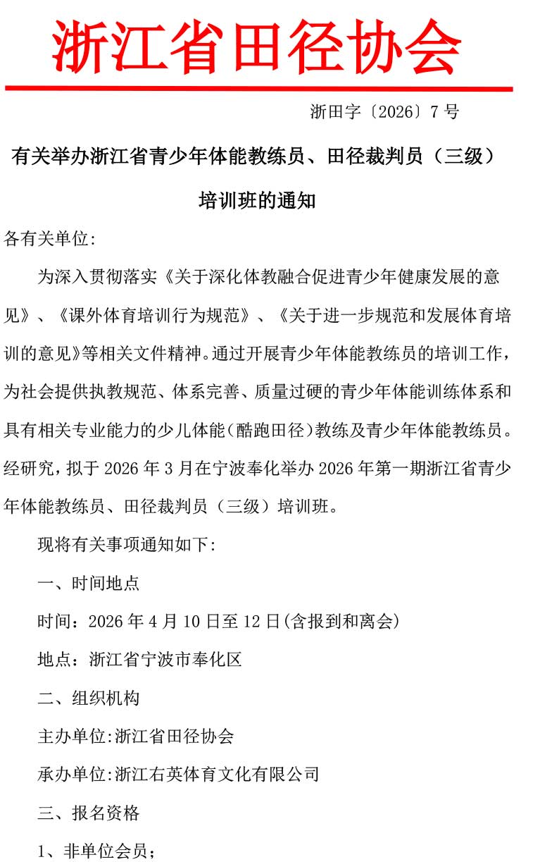 有关举办浙江省青少年体能教练员、裁判员(三级)培训班的通知