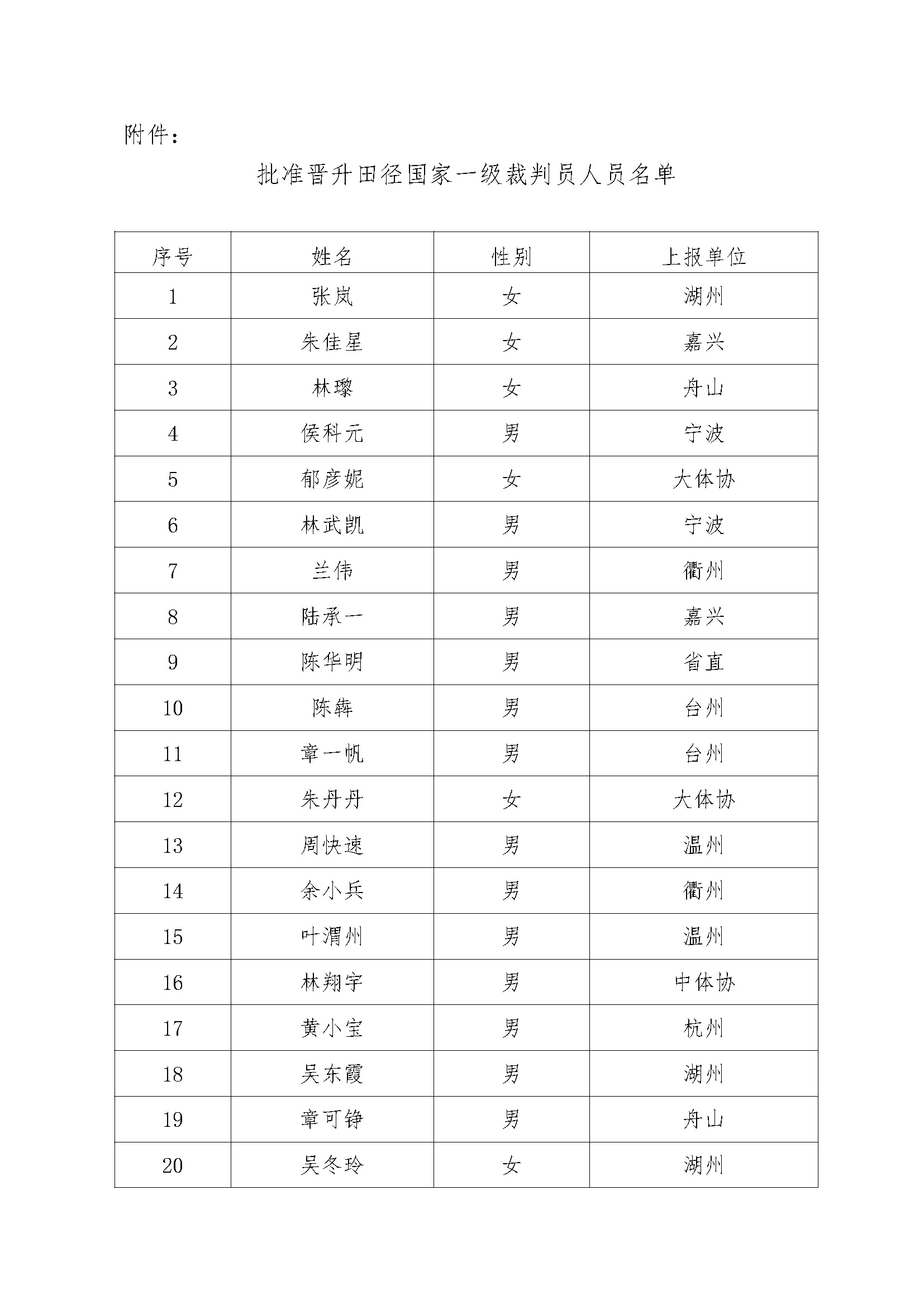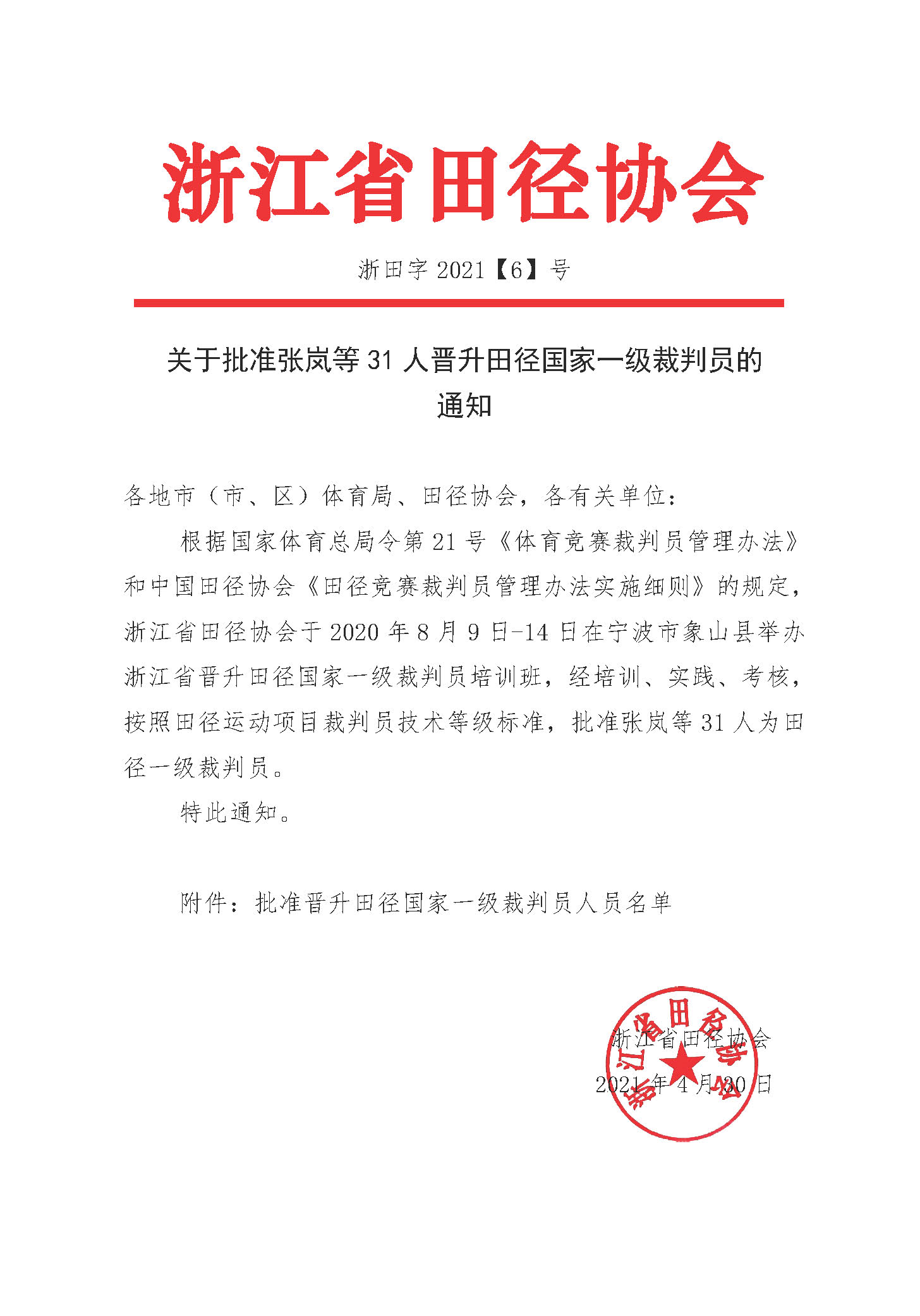 关于批准张岚等31人晋升田径国家一级裁判员的通知