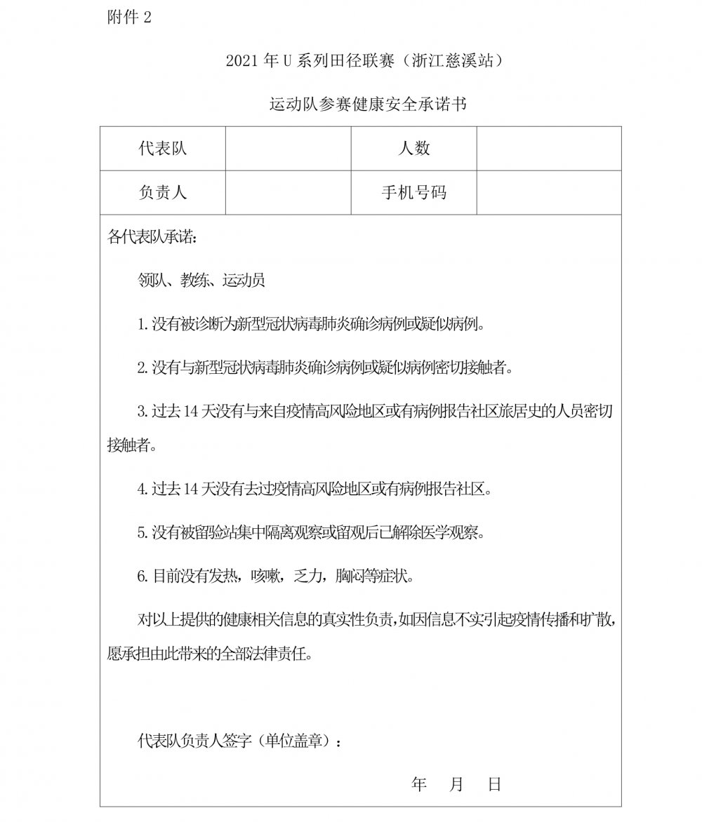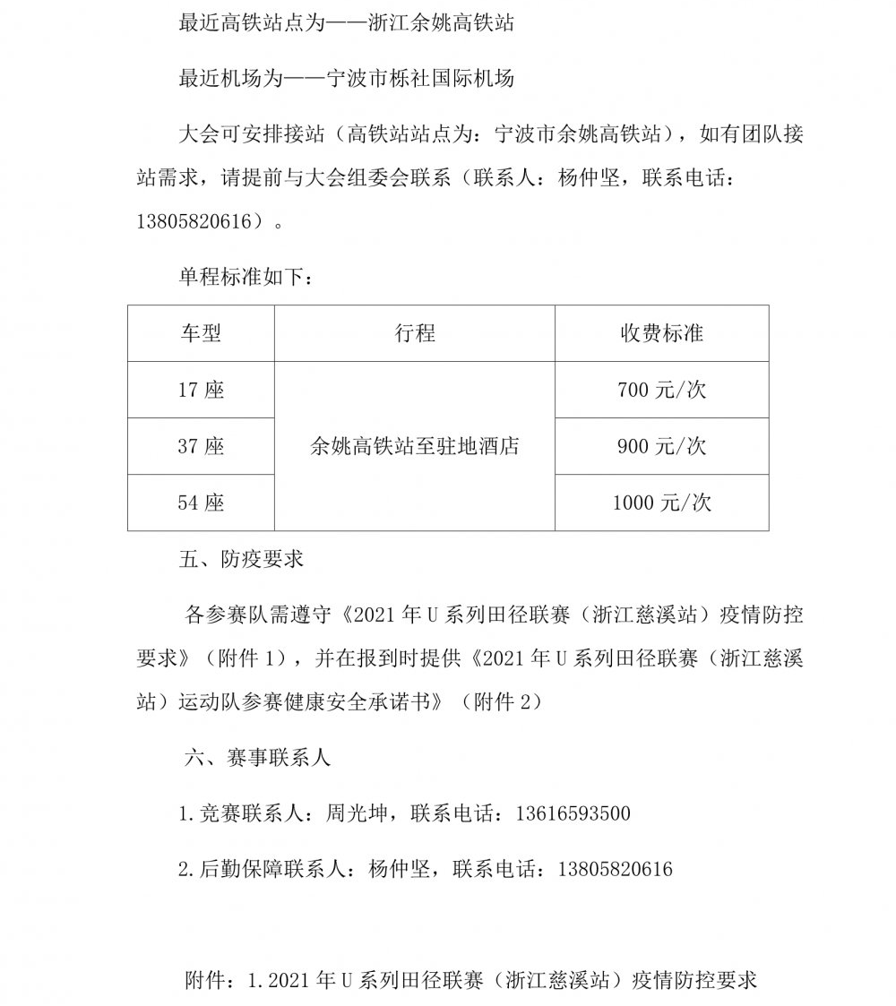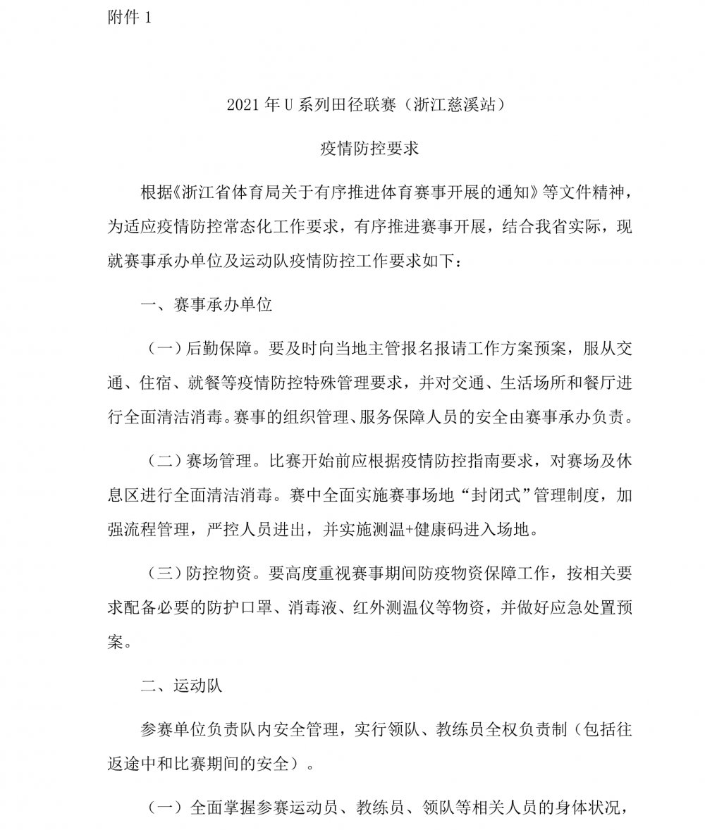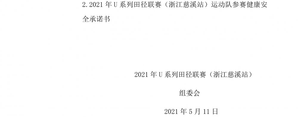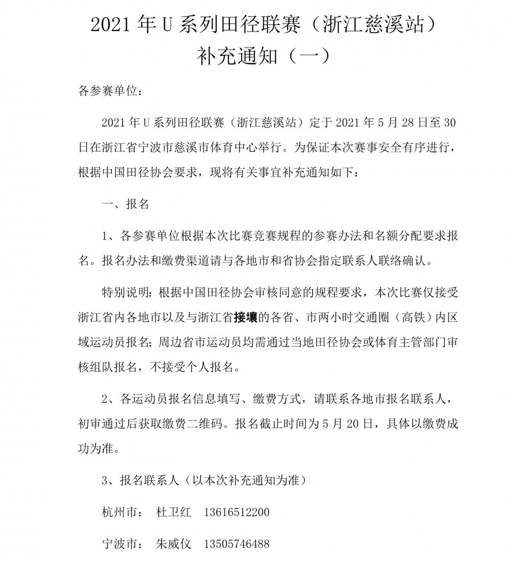 2021年U系列田径联赛(浙江慈溪站) 补充通知(一)