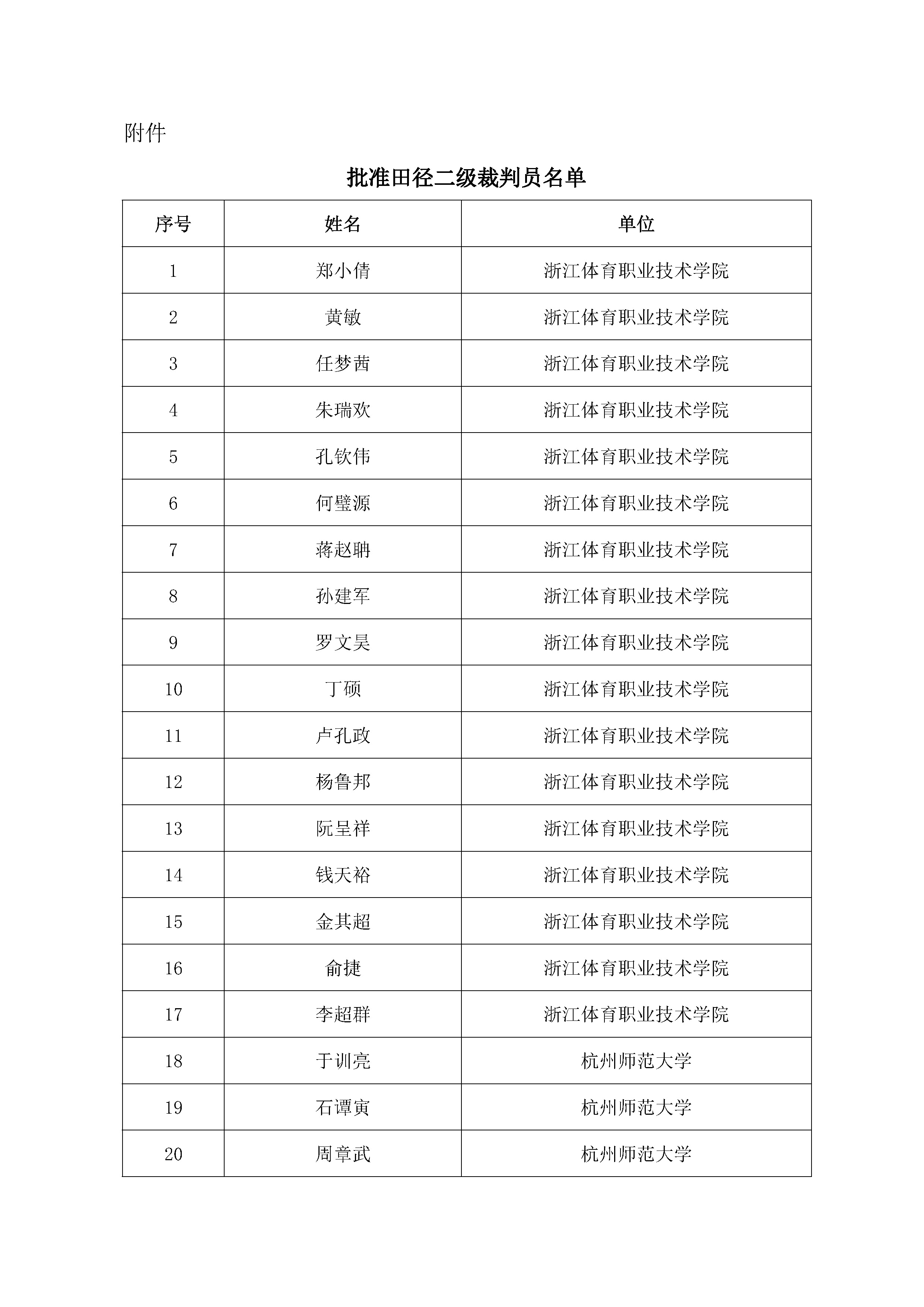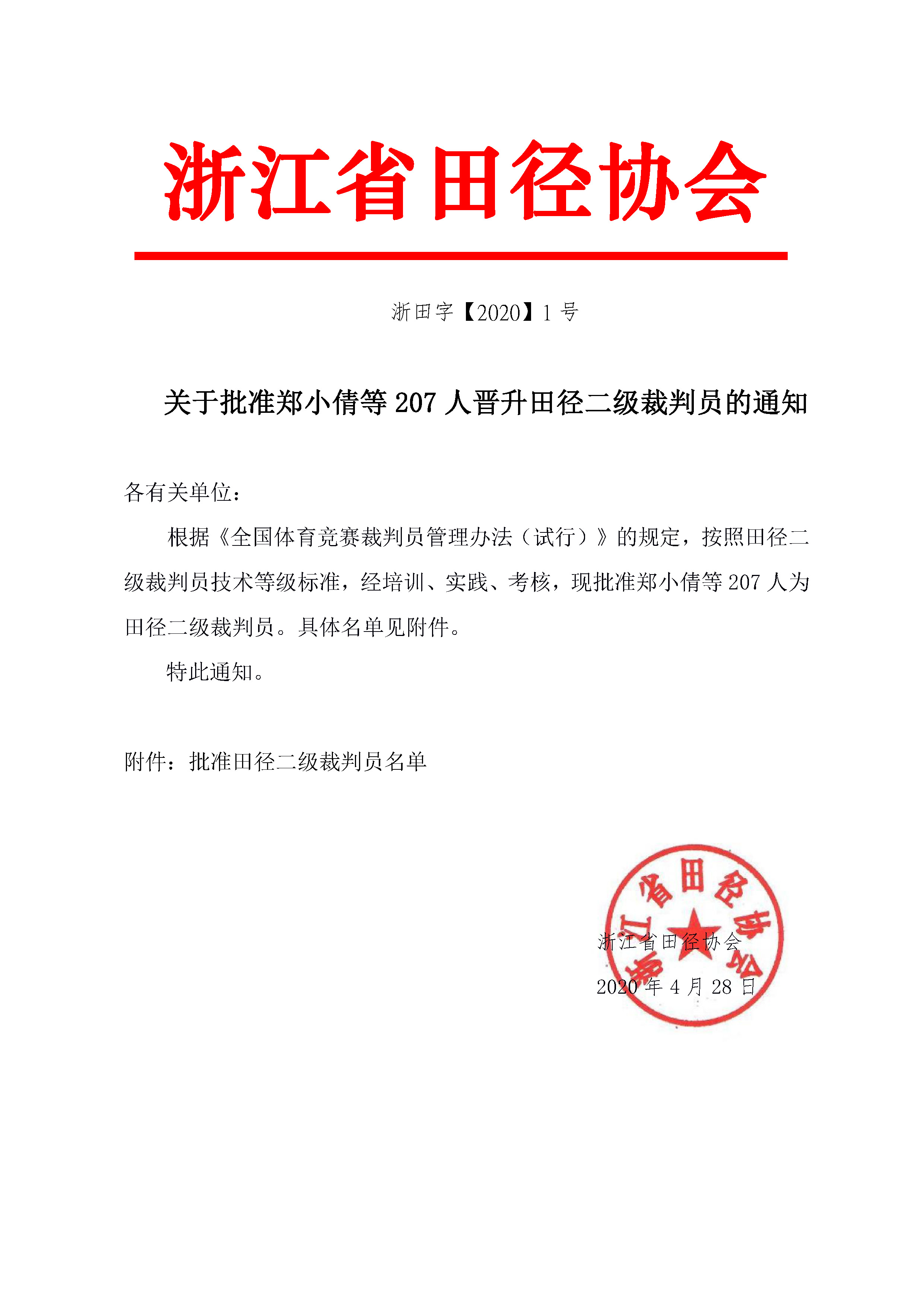 关于批准郑小倩等207人晋升田径二级裁判员的通知