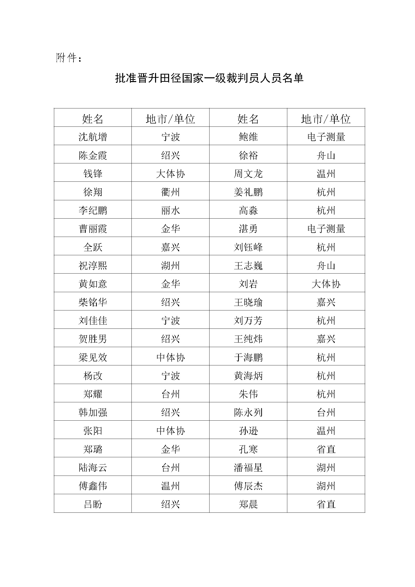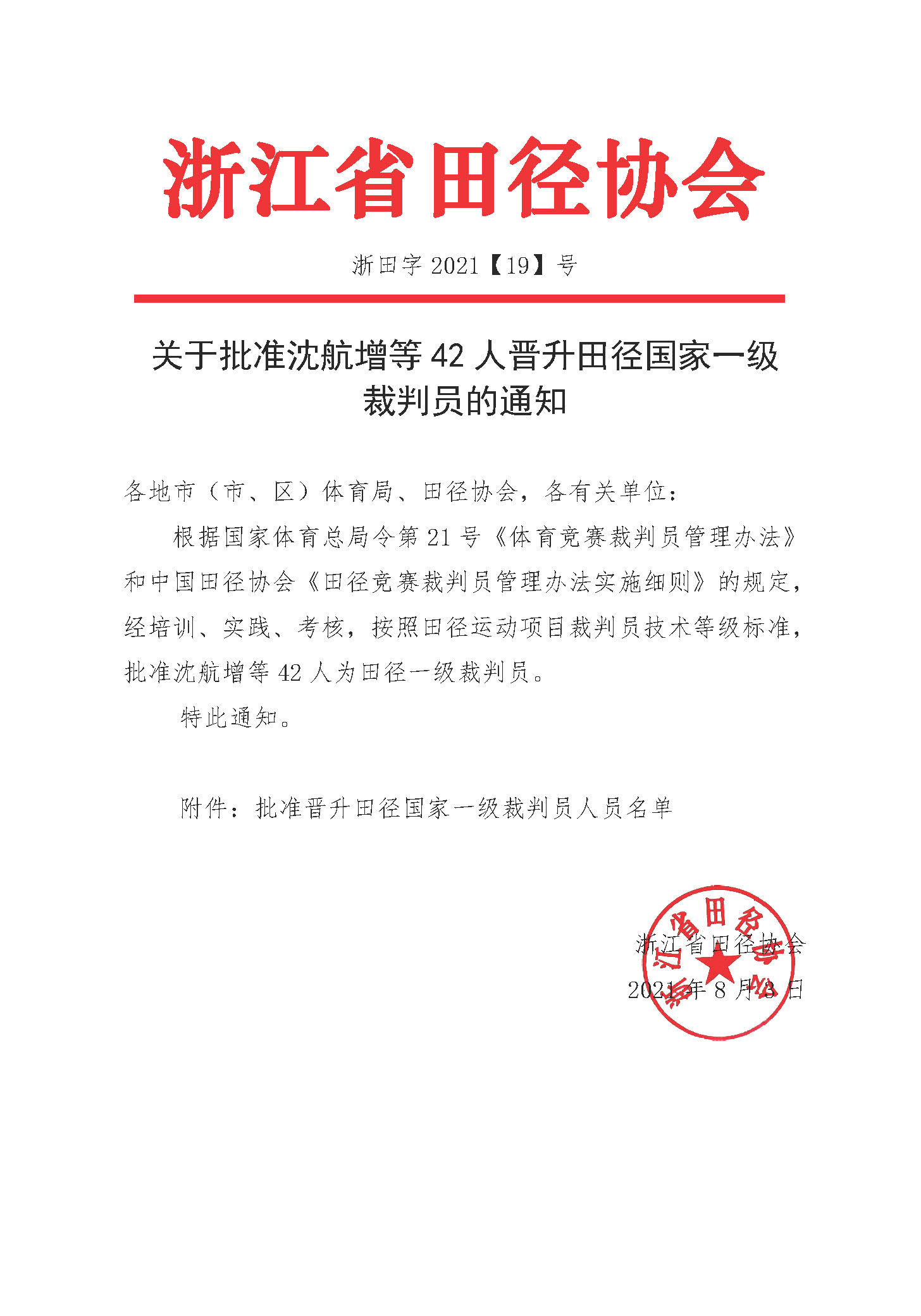 关于批准沈增航等42人晋升田径国家一级裁判员的通知