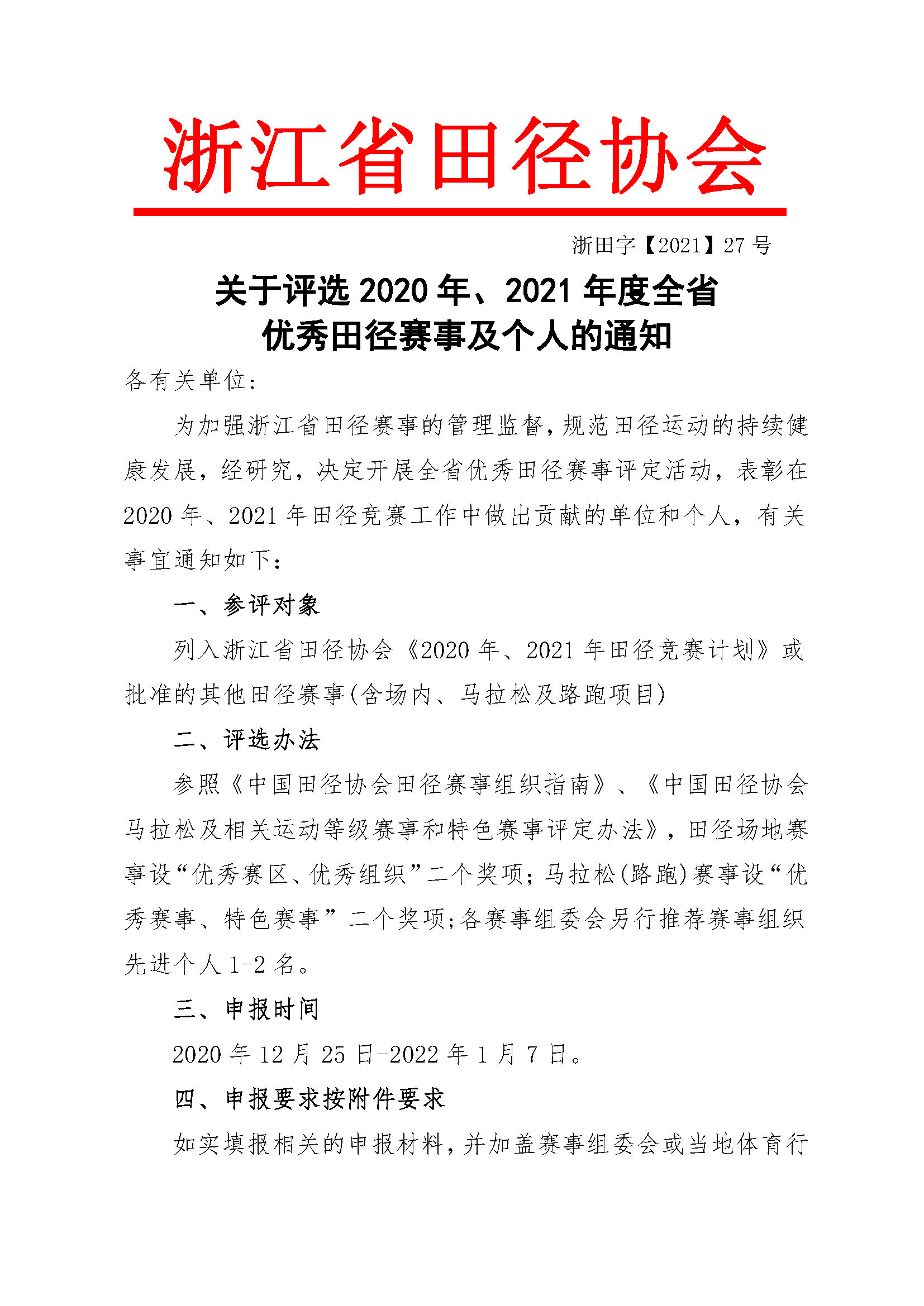 关于评选2020年、2021年度全省优秀田径赛事及个人的通知