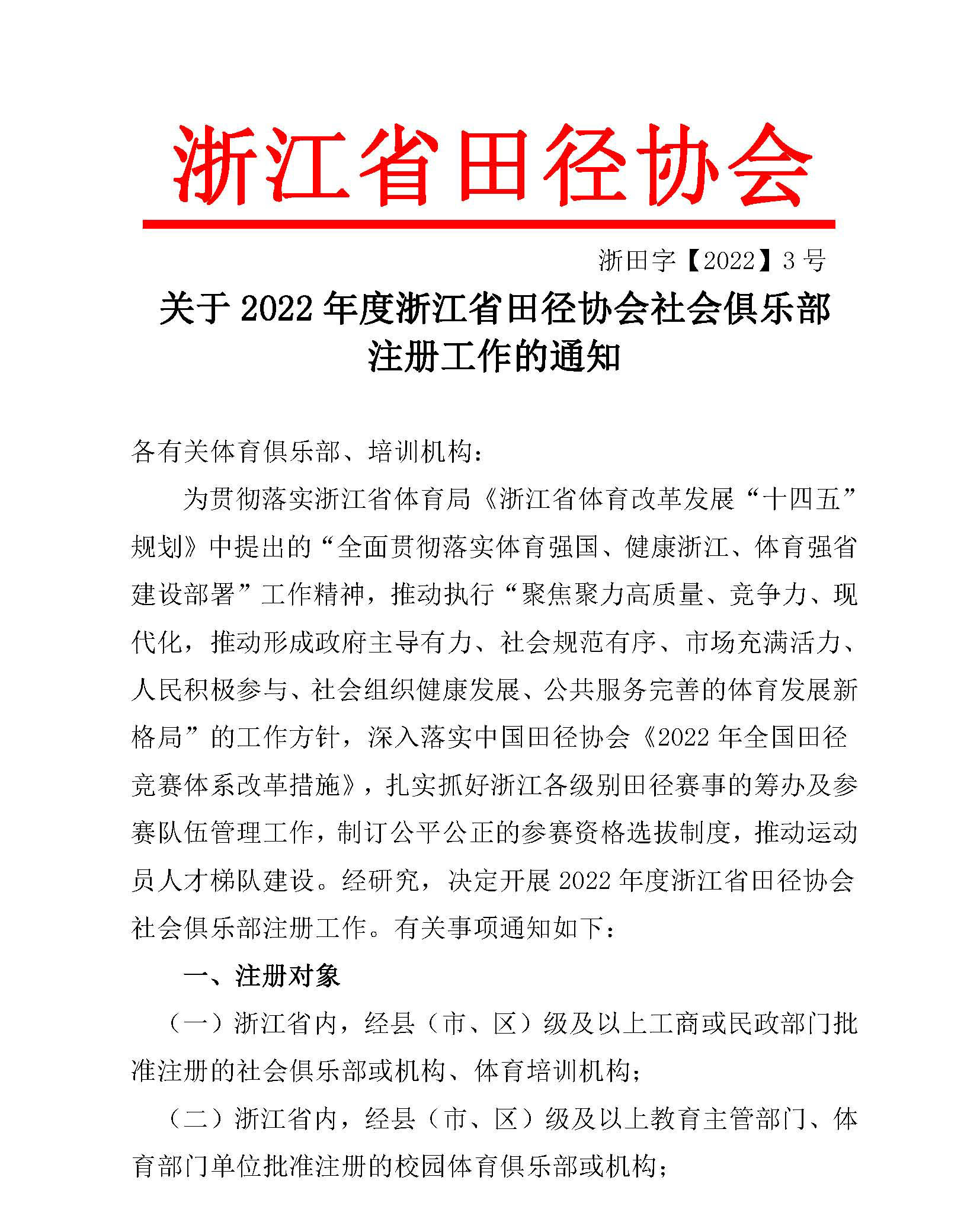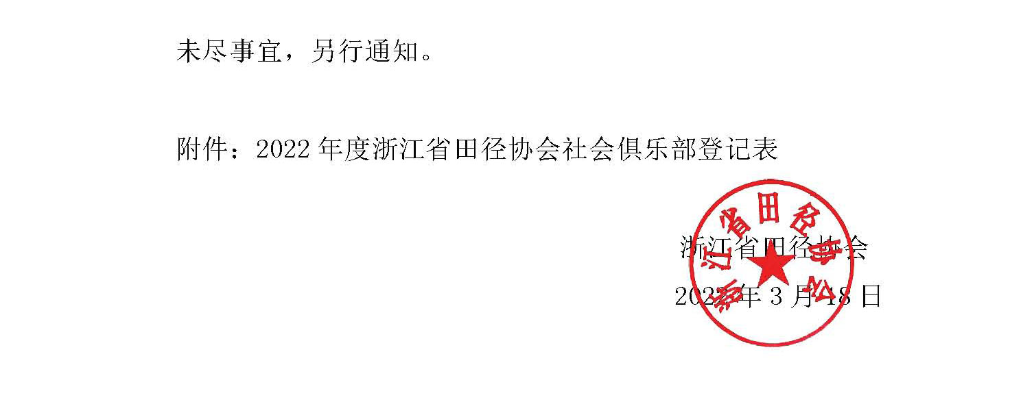 浙江省田径协会社会俱乐部注册通知