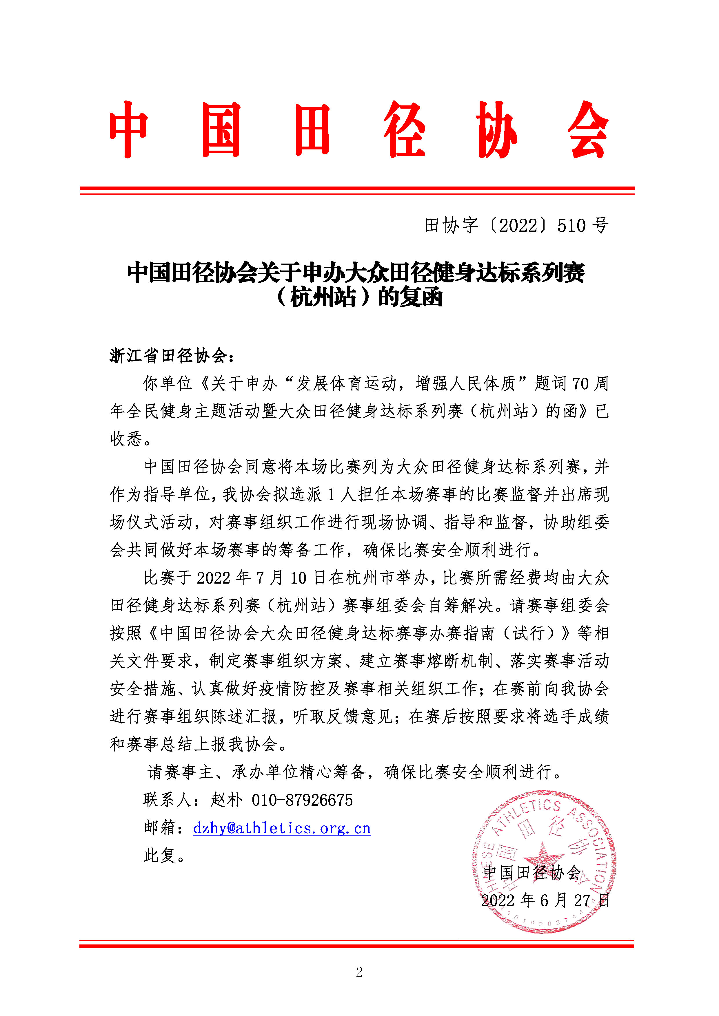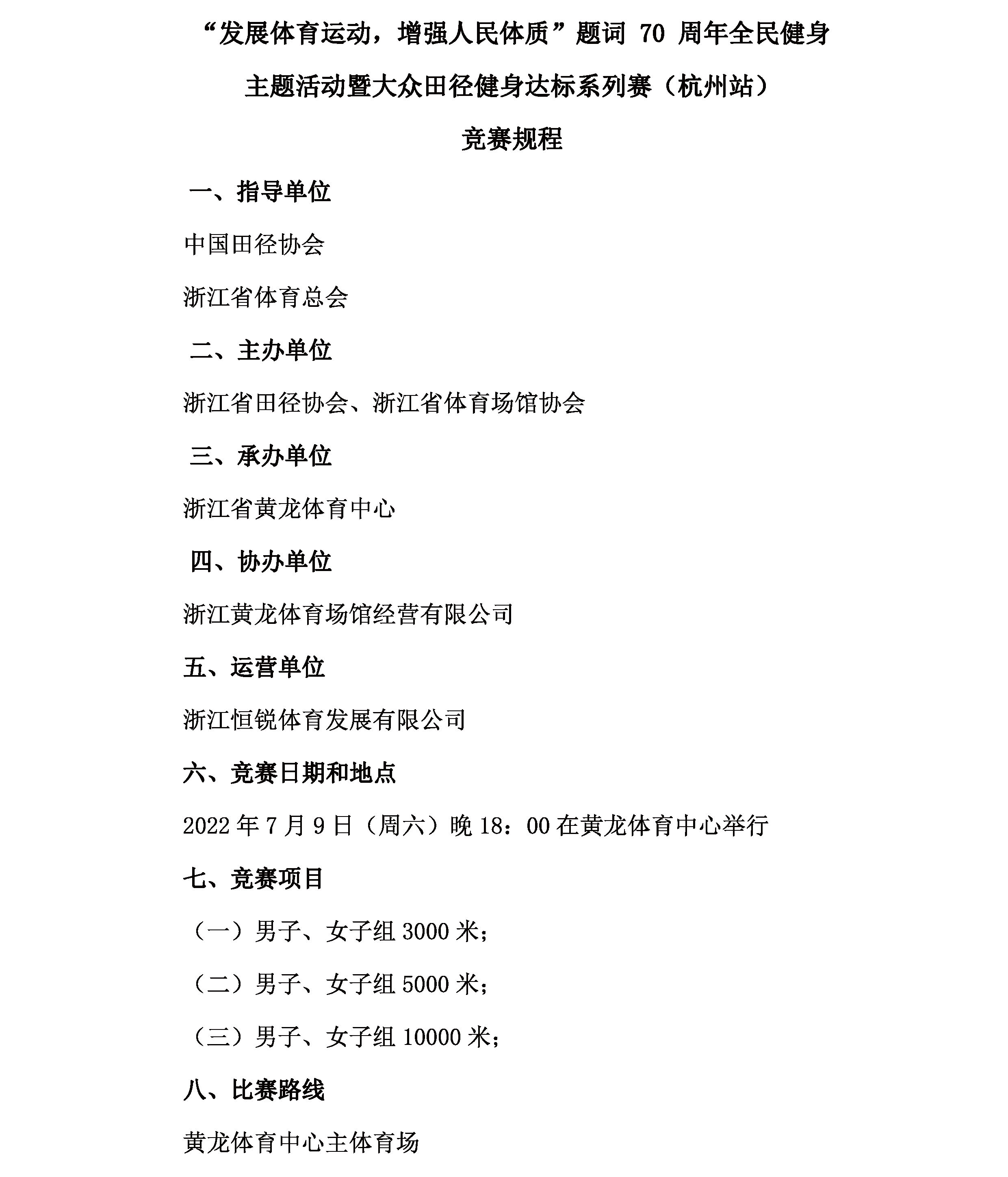 “发展体育运动,增强人民体质”题词70周年全民健身主题活动暨大众田径健身达标系列赛(杭州站)竞赛规程