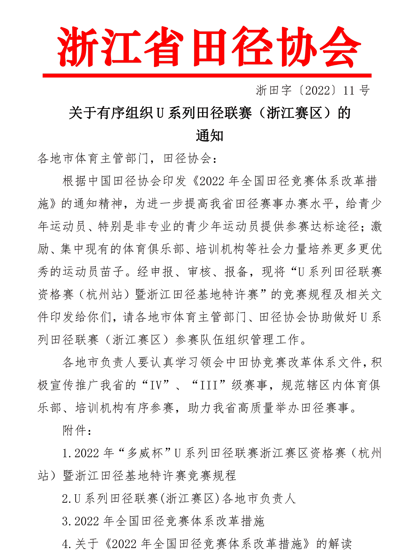 关于有序组织U系列田径联赛(浙江赛区)的通知