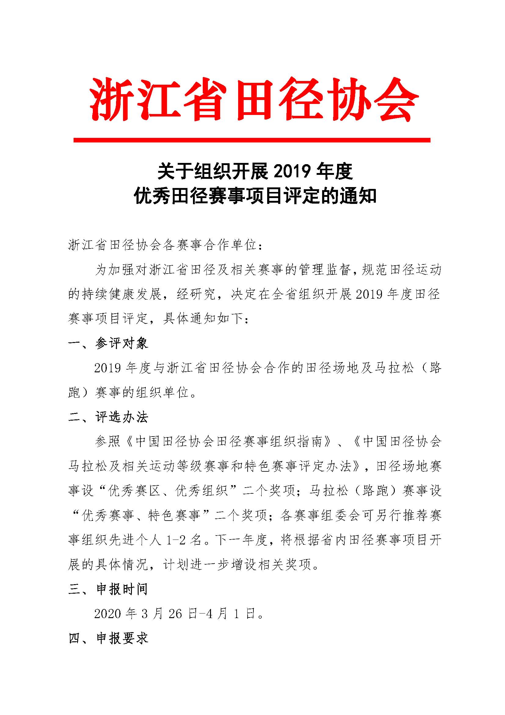关于组织开展2019年度 优秀田径赛事项目评定的通知