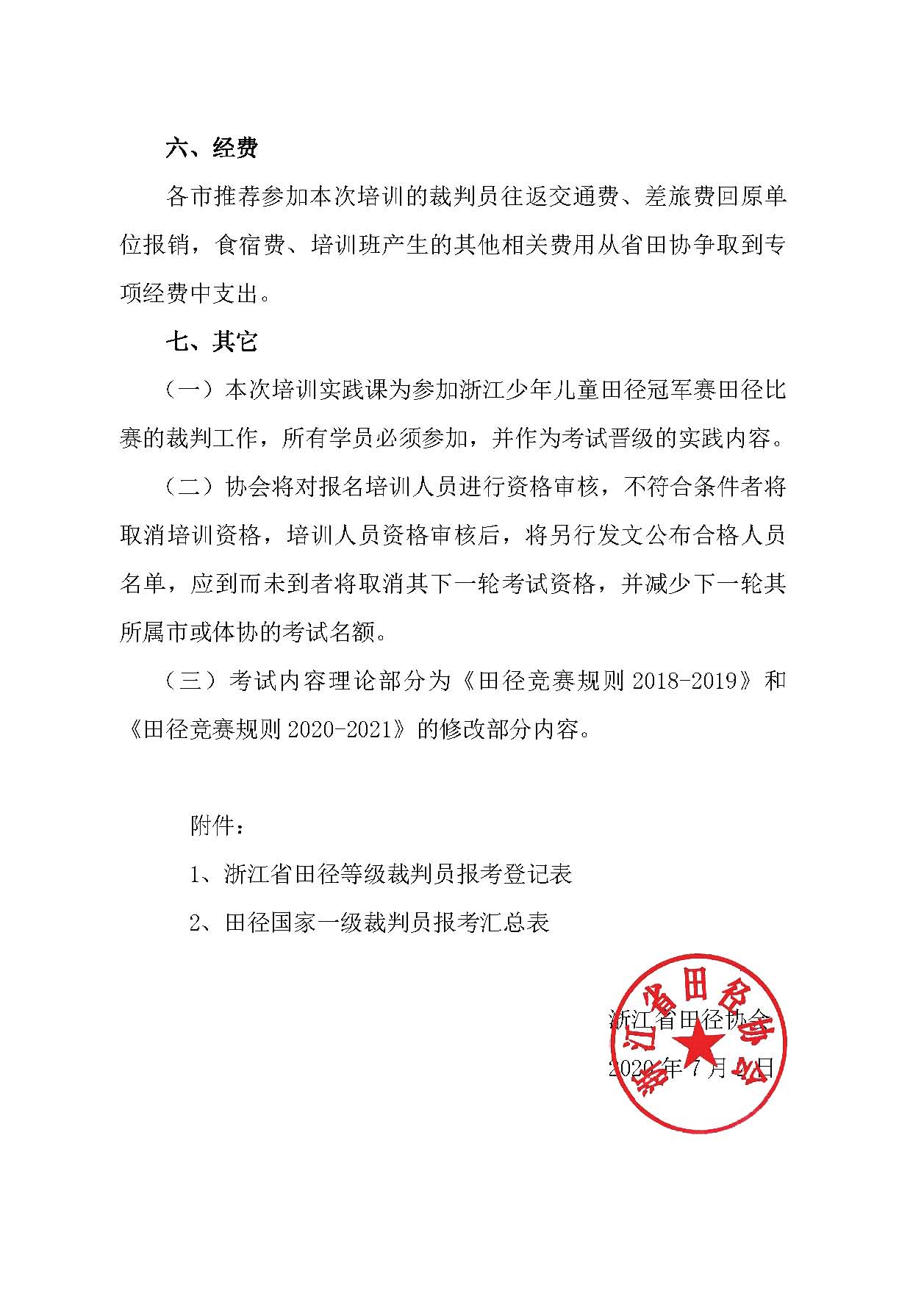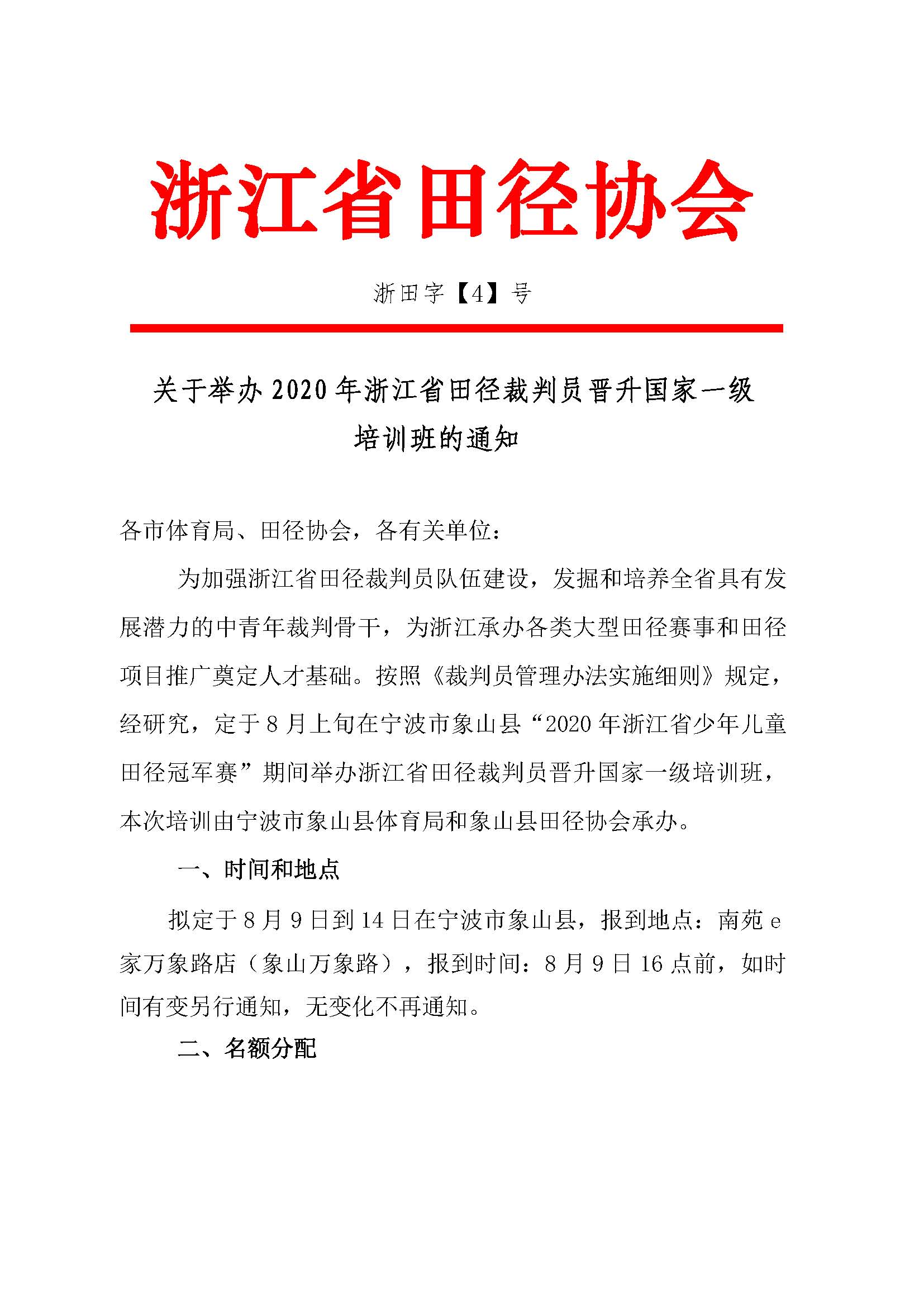 关于举办2020年浙江省田径裁判员晋升国家一级 培训班的通知
