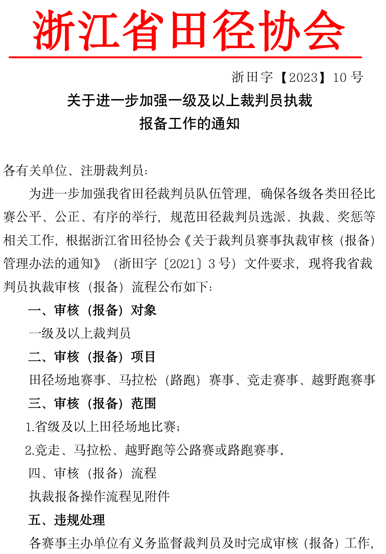 关于进一步加强一级及以上裁判员执裁报备工作的通知